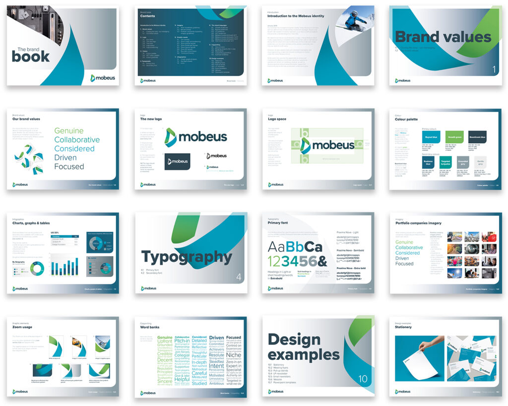 After we had completed the Mobeus branding refresh, they asked us for a comprehensive document that could be used as an awareness tool internally as well as by in-house designers.