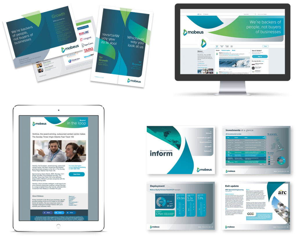 Mobeus has evolved and out-grown their launch identity. They required a brand for today that represented Mobeus as one team. but with two different and yet complementary investment strategies: Buyout and Growth.