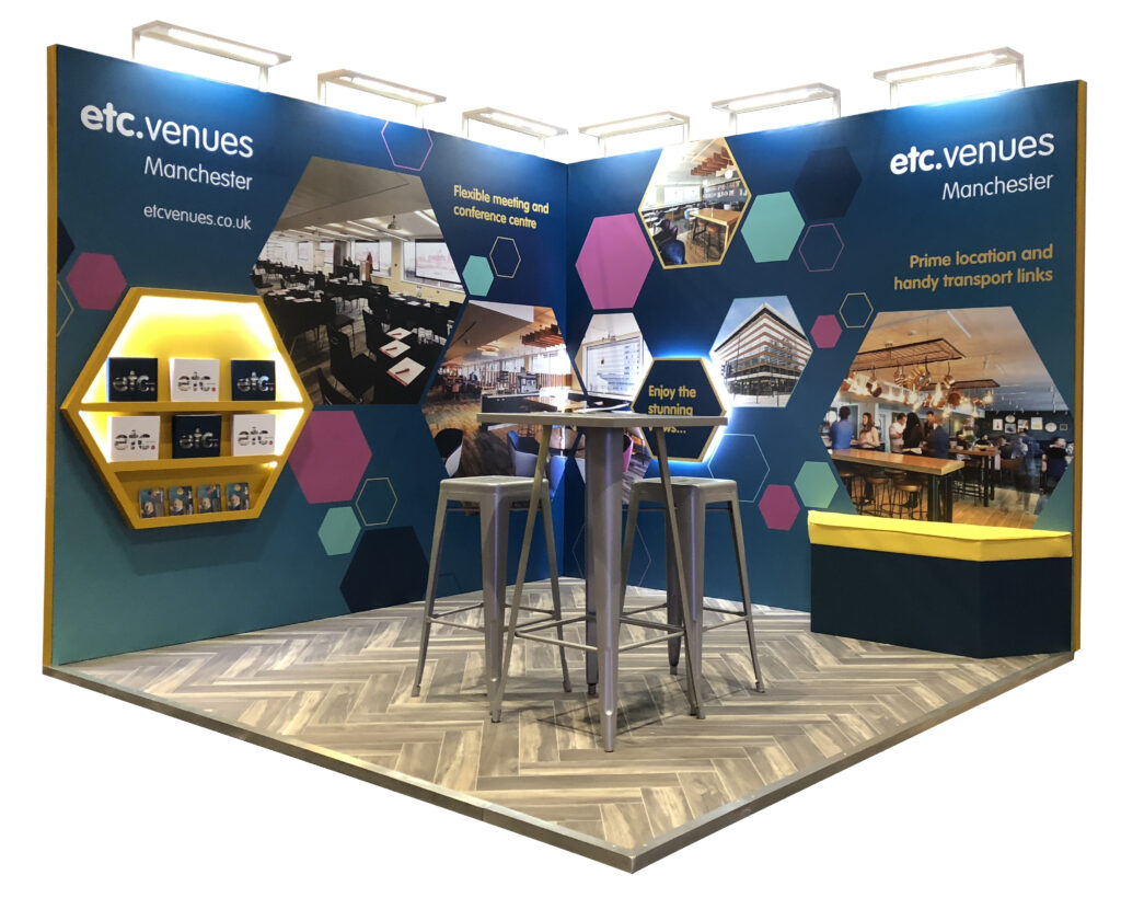 Our creative team produced a striking look and unique feel for the venue. A clear colour palette, tone and wonderful use of a honeycomb design (a nod to the worker bee). This creative blueprint was then applied to the venue interior, digital media, exhibition stand and other marketing materials. Feedback was outstanding.
