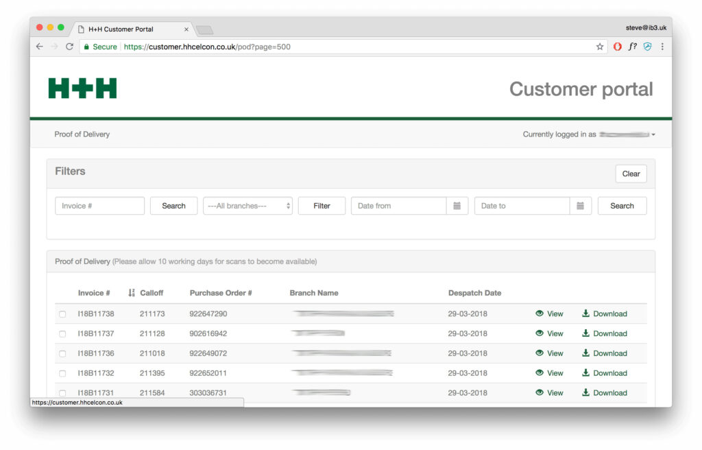 H+H required a secure, web based system to enable customers to view and download proof of delivery receipts.
